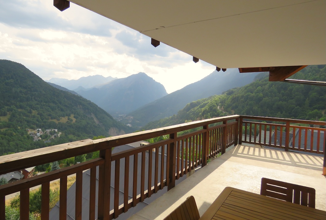 There is one en-suite bathroom with shower over, one ensuite shower room, one family bathroom with shower over and one separate WC. There are 4 x WCs in total. Moving into the open plan living space you are struck by the incredible views of the La Fare waterfall, the La Fare ski run and the valley towards Lac du Verney. The balcony is enormous with surface area of 39m2 and south facing so it receives the sun for most of the day.
