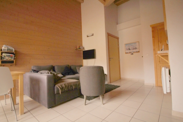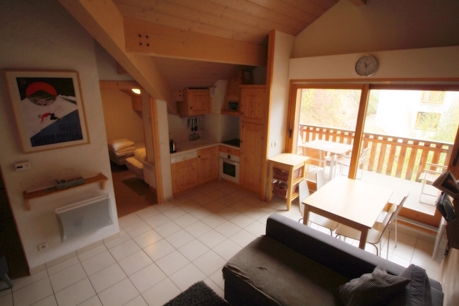 This lovely apartment consists of 2 bedrooms (one with a double bed and one with two single beds), one bathroom with shower/bath, separate WC, open-plan living space including kitchen and balcony with stunning views of the mountains. There is a sofa-bed in the main living area which converts into a very comfortable double should you require it. The apartment also benefits from 18ft ceilings to give a real sense of space. In addition, on the ground floor of the building you have access to your own ski locker.