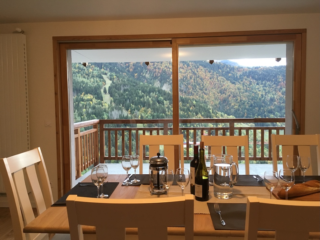 There is one en-suite bathroom with shower over, one ensuite shower room, one family bathroom with shower over and one separate WC. There are 4 x WCs in total. Moving into the open plan living space you are struck by the incredible views of the La Fare waterfall, the La Fare ski run and the valley towards Lac du Verney. The balcony is enormous with surface area of 39m2 and south facing so it receives the sun for most of the day.