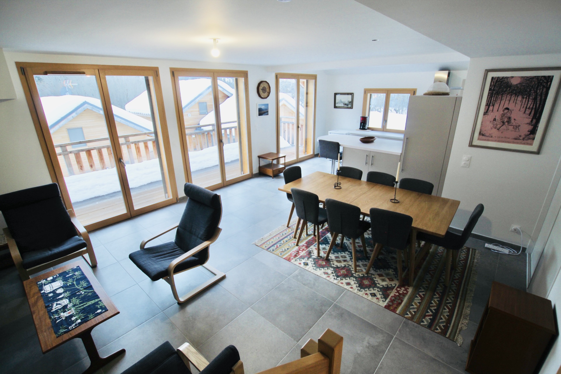 En hiver, le chalet est chaud et confortable grâce au chauffage par le sol dans l'espace de vie principal. À deux minutes de marche de la porte d'entrée, vous pouvez accéder à la piscine, à la salle de sport et au spa, ainsi qu'au bowling, à la patinoire et à un restaurant. L'escalator situé à côté du centre de loisirs vous permettra d'accéder à la station de ski, aux boutiques et aux bars et restaurants du village.