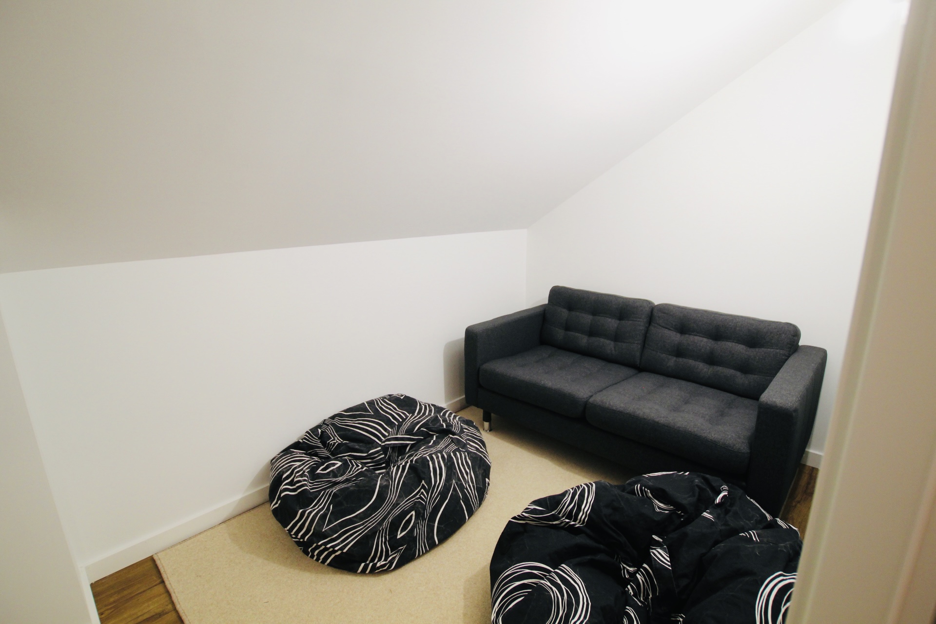 Deuxième étage. Chambre 4, Super King size ou chambre à deux lits. Chambre 5, 3 lits simples. Grande salle de bains familiale avec douche. Salle de cinéma et de jeux avec grande télévision et accès au streaming numérique.
